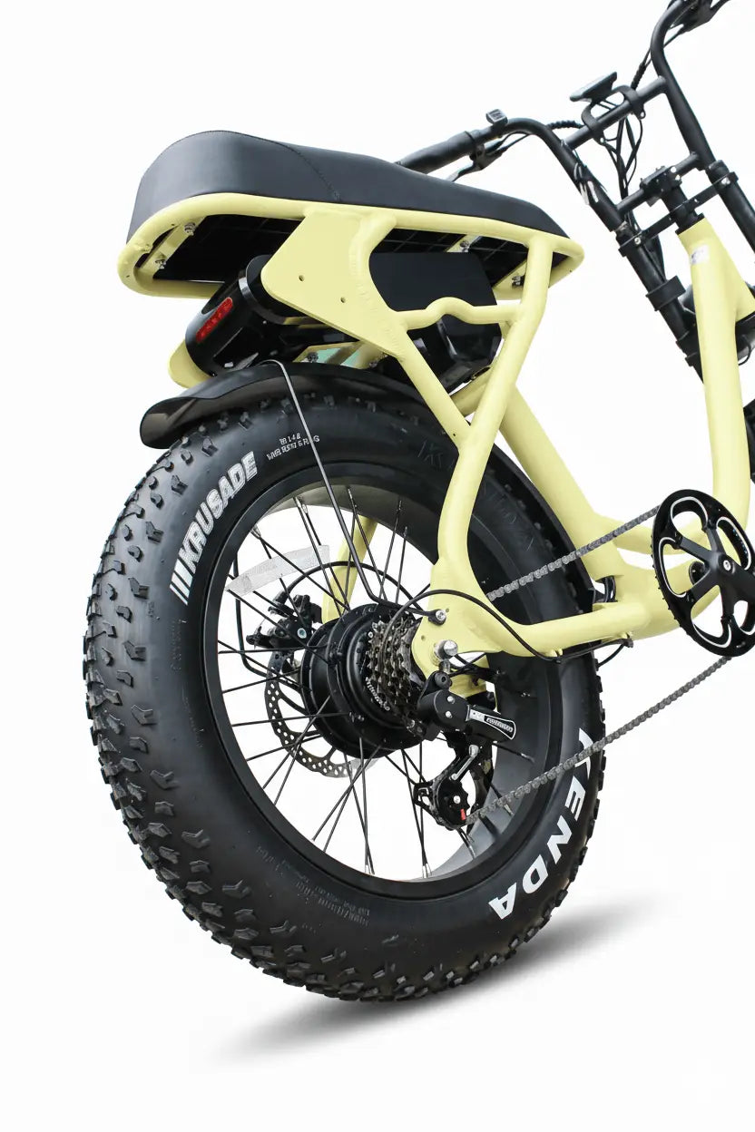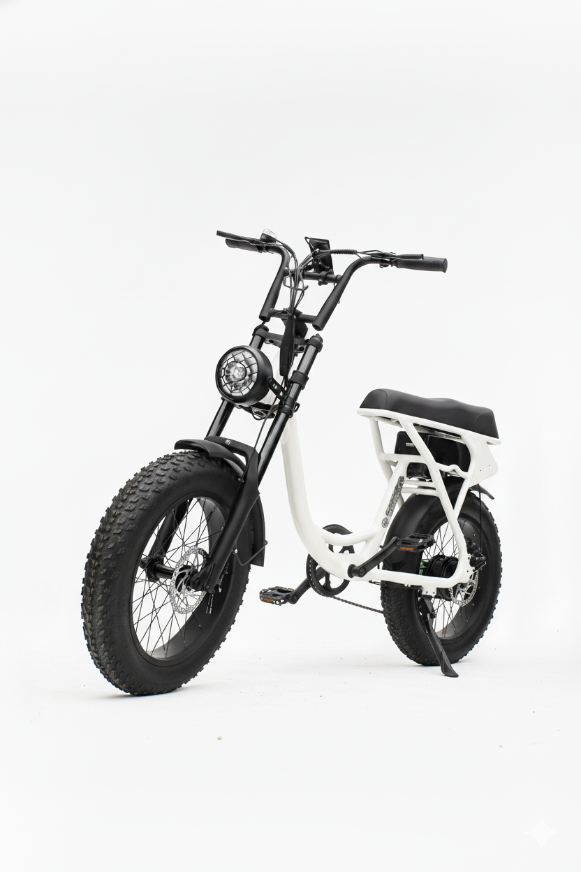 Avec son design vintage et son allure inspirée des motos rétro, ce vélo électrique au moteur arrière de 250w et sa batterie de 620 W est taillé pour l’évasion. Son phare old school à l’avant lui donne un style unique, parfait pour flâner sur les routes de bord de mer comme en ville. Polyvalent et passe-partout, il allie confort et robustesse pour profiter pleinement d’une ambiance plage et vacances, tout en offrant la puissance nécessaire pour gravir les côtes ou rouler sans effort sur le sable.